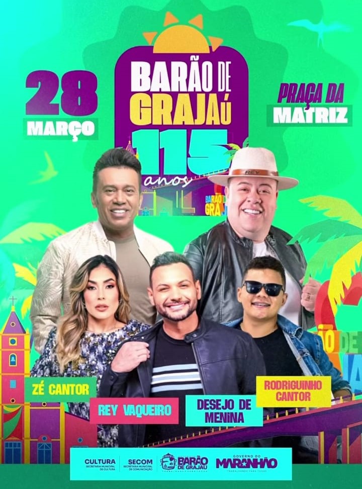 Barão de Grajaú (MA), anuncia grande festa pelos 115 anos com shows nacionais na Praça da Matriz. Malagueta Notícias 24 de fevereiro de 2026