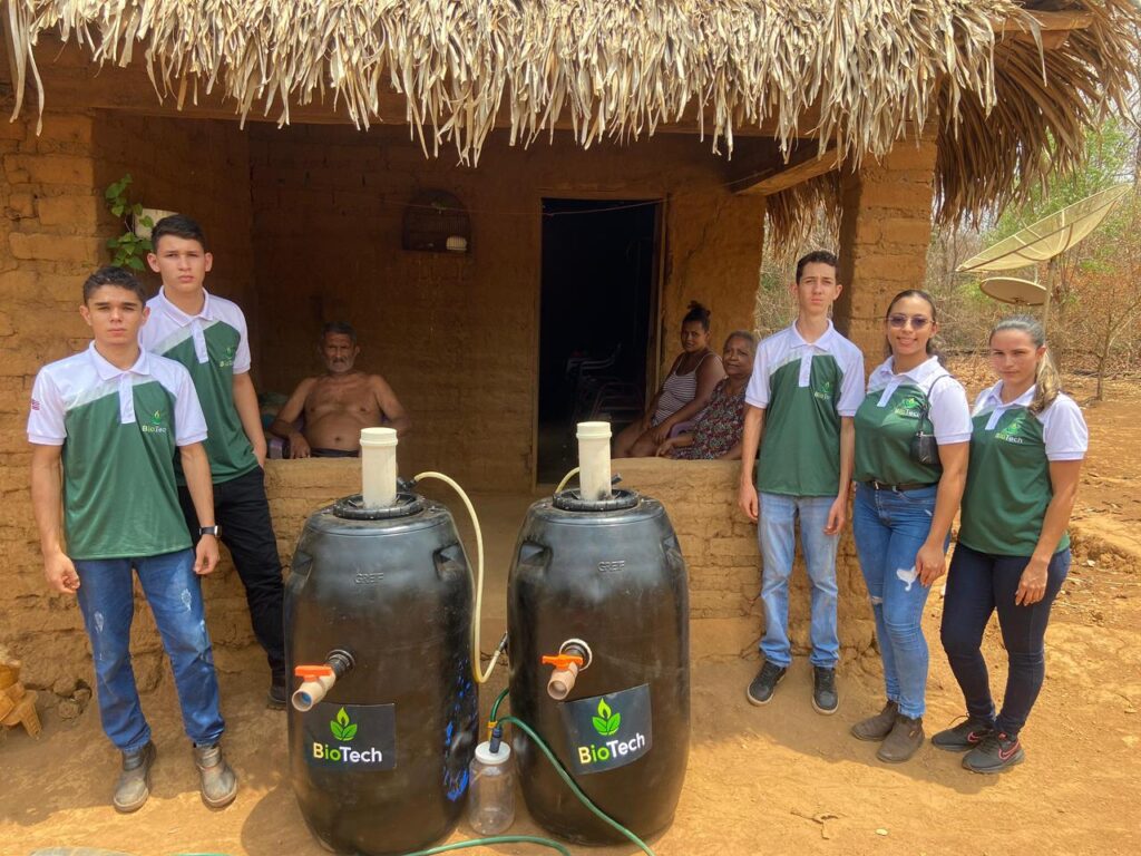 Energia limpa e acessível – Já a equipe Bio Tech, do Centro de Ensino Dr. Adonias Lucas de Lacerda, formada pelos estudantes Davi Lucas, Carmen Katherine, Isaac Lima, Naiuton Tomaz e Diana Costa, criaram o projeto “Gás do Campo”, que transforma resíduos orgânicos em biogás e biofertilizante.