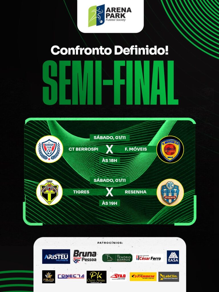 A disputa promete grandes jogos e muita rivalidade em campo. Às 18h, o CT Berrospi enfrenta o F. Móveis, em um duelo que promete ser equilibrado e cheio de emoção. Logo em seguida, às 19h, será a vez de Tigres e Resenha entrarem em campo para definir quem avança à grande final.