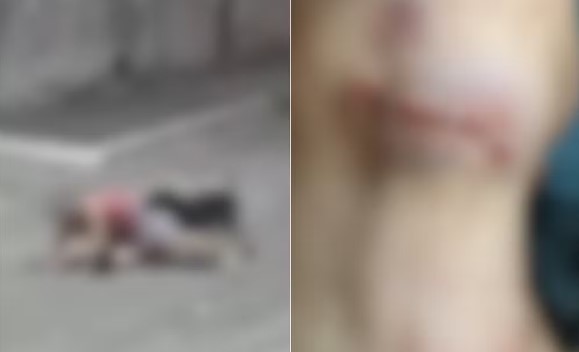 Uma câmera de segurança registrou o momento do ataque. As imagens acima foram borradas pela intensidade do ataque e para preservar a vítima.