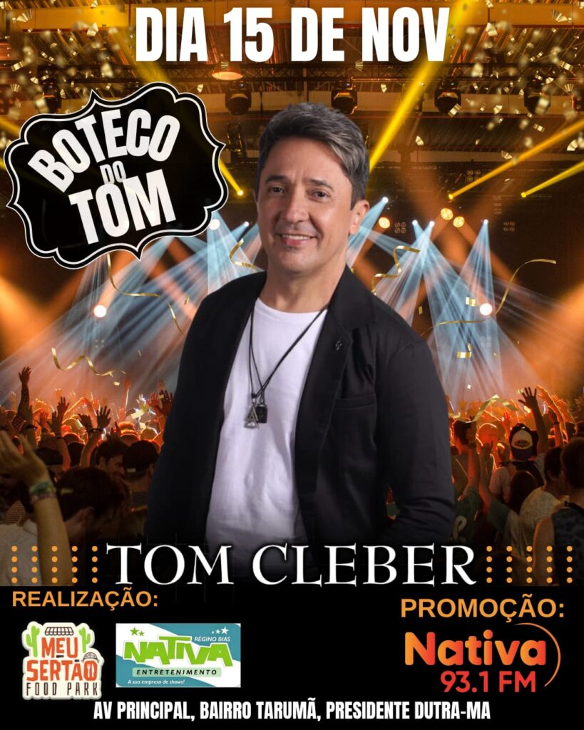 Na noite deste sábado dia 15 de novembro, o Cangaço Choperia recebe um dos maiores artistas brasileiro, o cantor maranhense Tom Cleber. Com canções românticas e letras que marcaram histórias, o cantor sobe no palco do Cangaço Choperia relembrando seus maiores sucessos com o Show Boteco do Ton.
