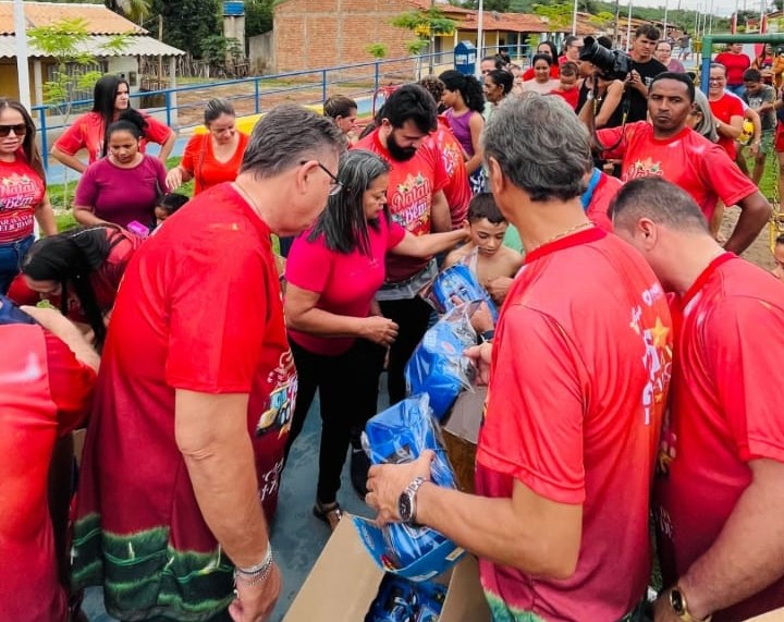 Na manhã desta segunda-feira (22/12), o município de São Domingos do Maranhão (MA) foi palco de mais uma edição da tradicional ação solidária “Natal do Bem”, realizada pelo prefeito Kléber Tratorzão, ao lado de sua esposa Núbia Patrol. A iniciativa teve como objetivo levar alegria e esperança às crianças do município por meio da entrega de brinquedos. De acordo com a organização, a ação acontece há 25 anos. O “Natal do Bem” tem como foco fortalecer o espírito de solidariedade, amor ao próximo e inclusão social.