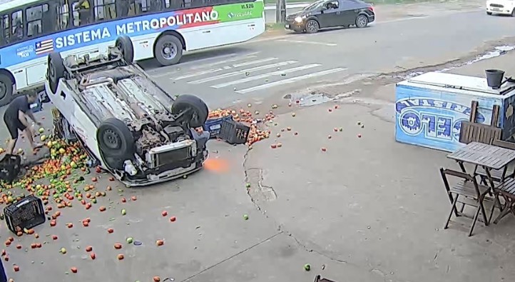 De acordo com a Polícia Militar, um ônibus de transporte coletivo colidiu com um carro de passeio que trafegava pela rodovia. No sentido contrário, uma motocicleta acabou se envolvendo na colisão, resultando no capotamento do veículo leve após o impacto.