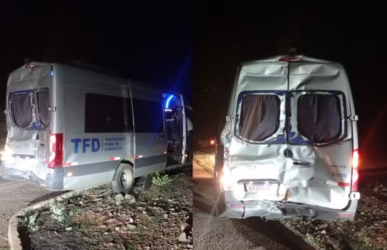 Uma van com 19 passageiros foi atingida por um caminhão na noite de terça-feira (10/02) na BR-407, na zona rural de Jaicós (PI). Duas pessoas tiveram ferimentos leves. Segundo a prefeitura da cidade, o veículo transportava pacientes e acompanhantes a Teresina para fazer tratamento fora do domicílio.