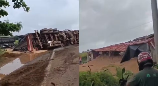 Uma carreta tombou e bloqueou, na manhã desta sexta-feira (10/04), um trecho da BR-010 em Imperatriz, no Maranhão. Apesar do impacto, ninguém ficou ferido.